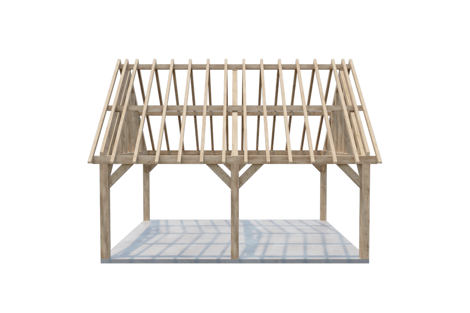 Erg mooie basis voor mijn kapschuurtje. Was met drie man prima in elkaar te zetten binnen een dagdeel. Nu nog het dak erop, tussen de staanders zwart Zweeds rabat en dan kunnen het tuingereedschap en de fietsen erin
