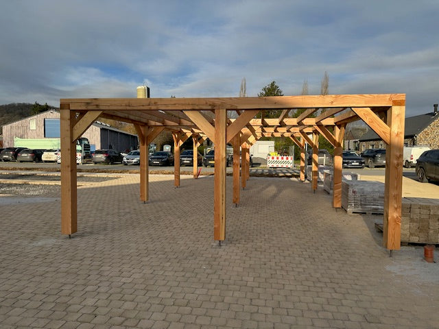 Découvrez la polyvalence du London, une structure en bois spacieuse de 45 ou 57,75m² avec des poutres surdimensionnées 18x18cm, idéale comme grand carport ou comme poolhouse élégant au design moderne. Cette construction offre non seulement suffisamment d'espace pour plusieurs véhicules, mais peut également servir de poolhouse élégant et fonctionnel, un atout pour tout jardin. Avec sa construction robuste et son design épuré, le London est un choix exceptionnel pour ceux qui recherchent des solutions à la fois pratiques et esthétiquement attrayantes.